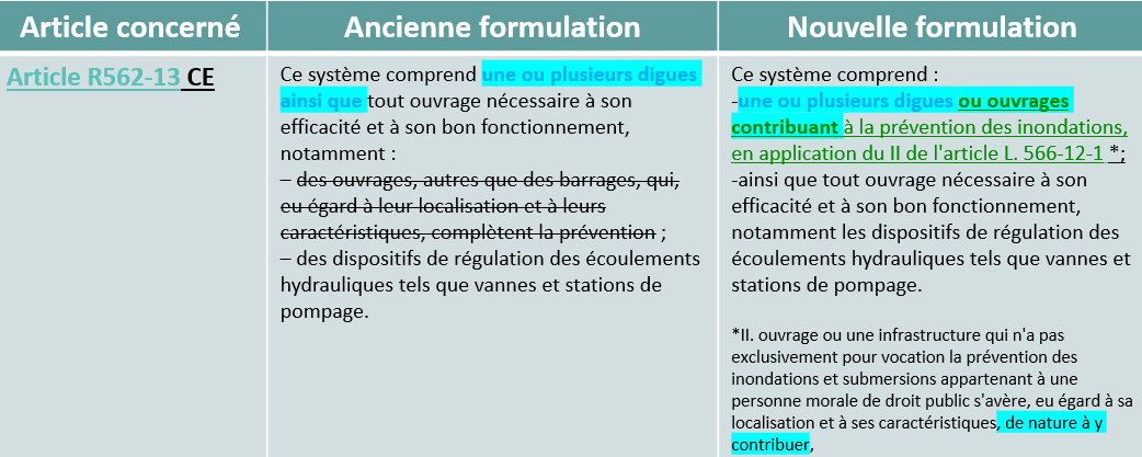 - 1/ Modifications dans la définition d'un système d'endiguement