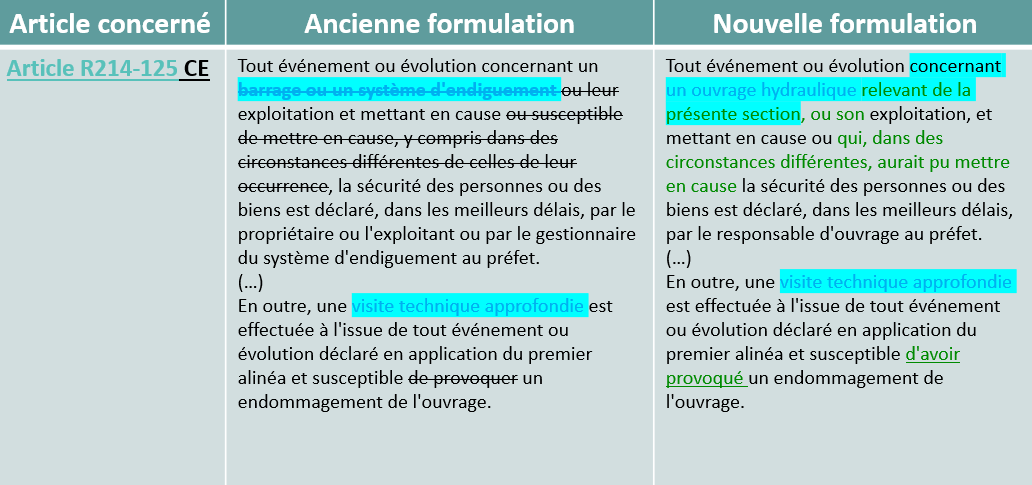 France Digues a analysé le décret et a relevé 3 modifications qui vous concernent plus spécifiquement :