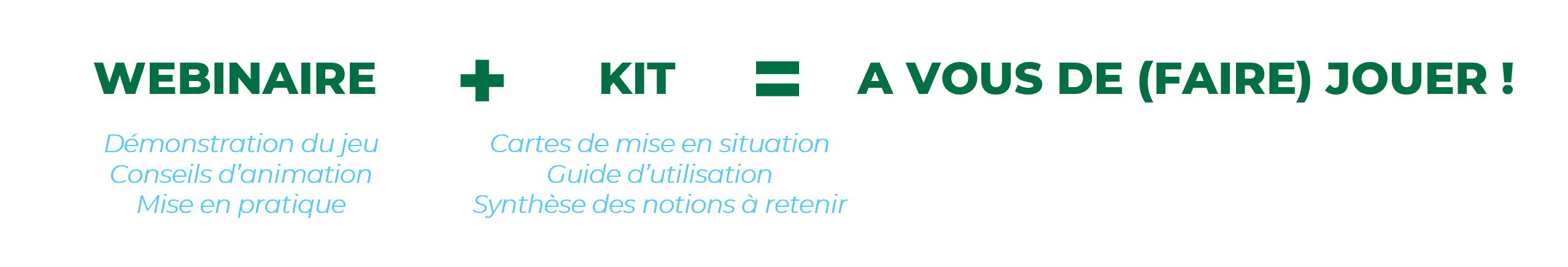 Vous souhaitez faire jouer vos collègues ? 1/ Suivez le webinaire "devenez animateur" 12 mai 2026 à 14h (2h30 en visio) |